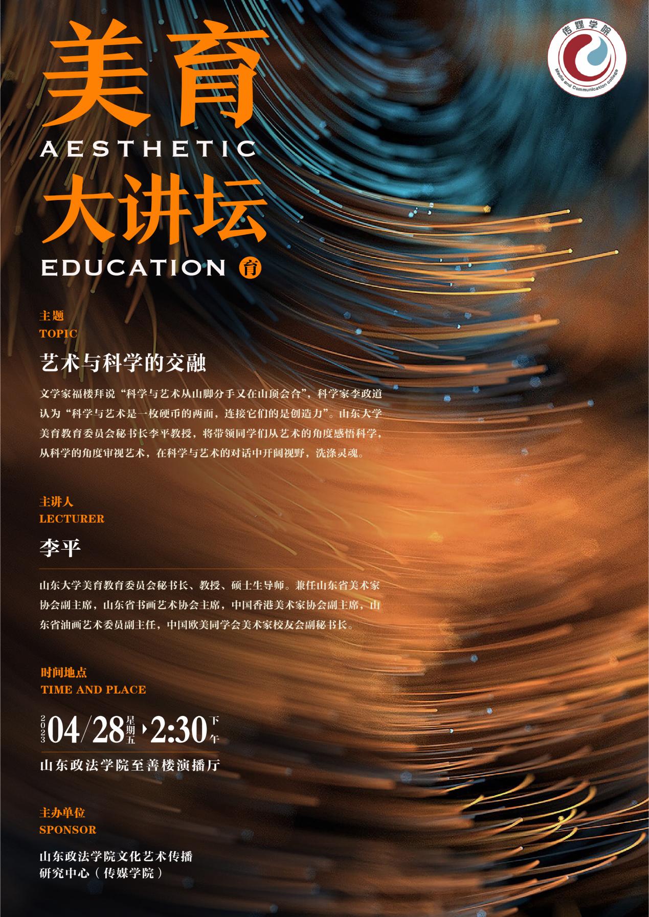 大通社讯(记者肖怡玉 范羽彤)4月28日下午,山东大学艺术学院教授李平以“科学与艺术的融合”为主题做客山东政法学院美育大讲坛第30期。山东政法学院传媒学院(文化艺术传播研究中心)院长(副主任)孟文彬教授主持讲座。