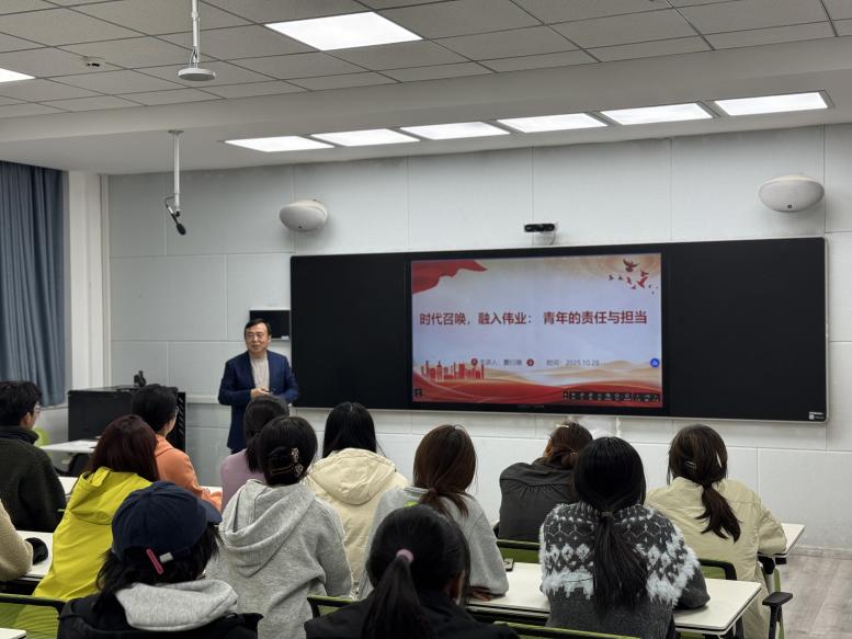 在思政课环节,窦衍瑞以“时代召唤,融入伟业:青年的责任与担当”为主题,结合学生实际与未来发展,深入解读了党的二十届四中全会精神。他勉励同学们深刻认识自身在国家发展进程中的使命,主动将个人理想融入党和国家事业,努力成为担当民族复兴大任的时代新人。