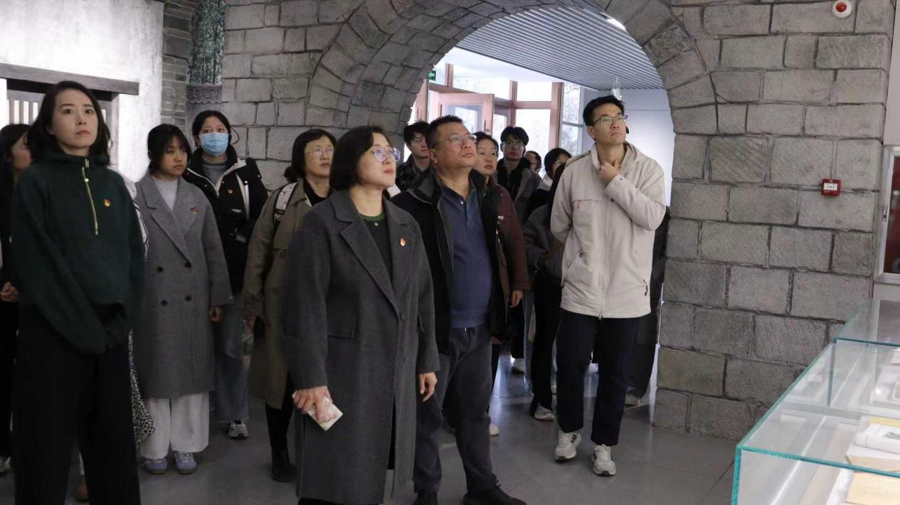 活动的第一站来到了位于沂蒙山区的六一八战备电台旧址。这里曾是共和国通讯事业的一座坚强堡垒,见证了特殊年代里革命先辈们艰苦卓绝的奋斗历程。在幽深的山洞坑道内,师生党员们依次参观了当年的发射大厅、指挥室、工作间及生活区。一件件布满岁月痕迹的实物、一幅幅珍贵的历史图片、一段段生动的影像资料,将大家带回到了那个“深挖洞、广积粮”、备战备荒的年代。党员们深刻感受到了老一辈广播通讯工作者对党忠诚、不辱使命的坚定信念,不畏艰难、艰苦奋斗的优良作风,以及“甘当无名英雄”的奉献精神。这处“地下长城”所蕴含的忠诚与坚守、责任与担当,深深震撼和激励着每一位在场的党员,让大家对维护国家安全、坚守意识形态阵地有了更直观和深刻的理解。
