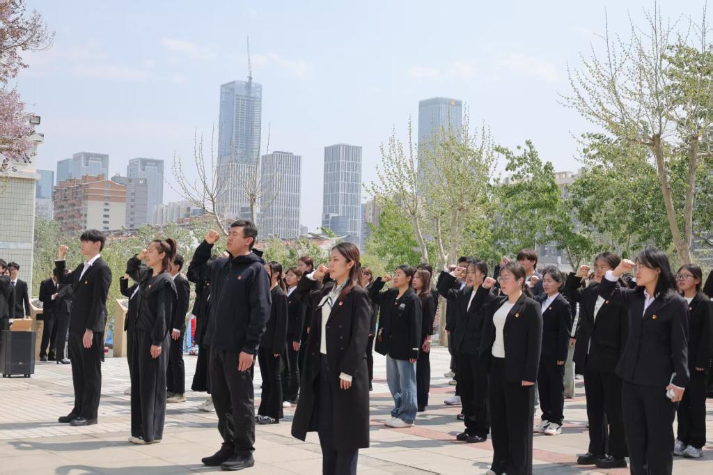 在领誓人带领下,学院党员面向党旗庄严宣誓,重温入党誓词;团员代表面向团旗重温入团誓词。铮铮誓言在遗址上空久久回荡,进一步坚定了师生们的理想信念与责任担当。