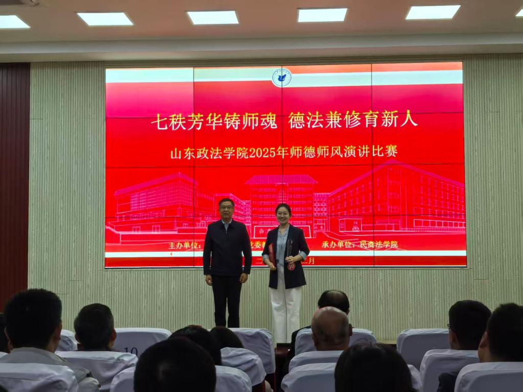 正值学校七十周年校庆之际,12月3日,山东政法学院师德师风演讲比赛圆满落幕。传媒学院肖爱丽老师凭借扎实的语言功底与真挚的育人情怀脱颖而出,成功摘得比赛冠军,荣获一等奖。