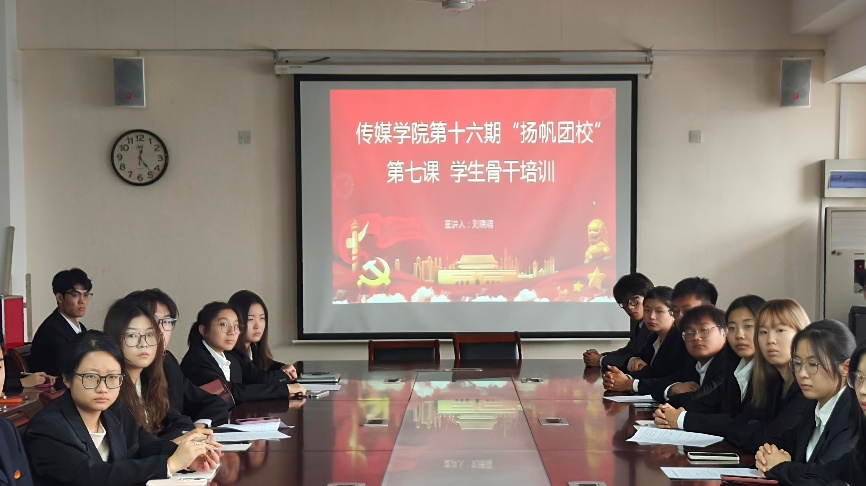 (记者 王梦雪)为深入学习贯彻习近平总书记关于青年工作的重要思想,持续深化共青团基层组织改革,进一步夯实我院共青团工作基础,提高团学业务工作的规范化水平和执行能力,增强团学队伍凝聚力和向心力。10月15日,传媒学院开展第十六期“扬帆团校”第七课,学院团委副书记刘晓萌担任主讲人,主要学生干部与会学习。