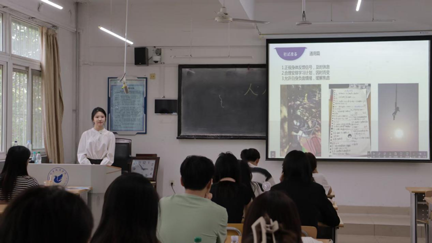 “考公”专场,田相茹、林佳璇等4名同学结合自身经历,围绕行测、申论和面试等考公重点展开讲解。她们强调了日常积累的重要性,提醒同学们要加强培养政治素养,并根据自身实际推荐了有针对性的学习资源。