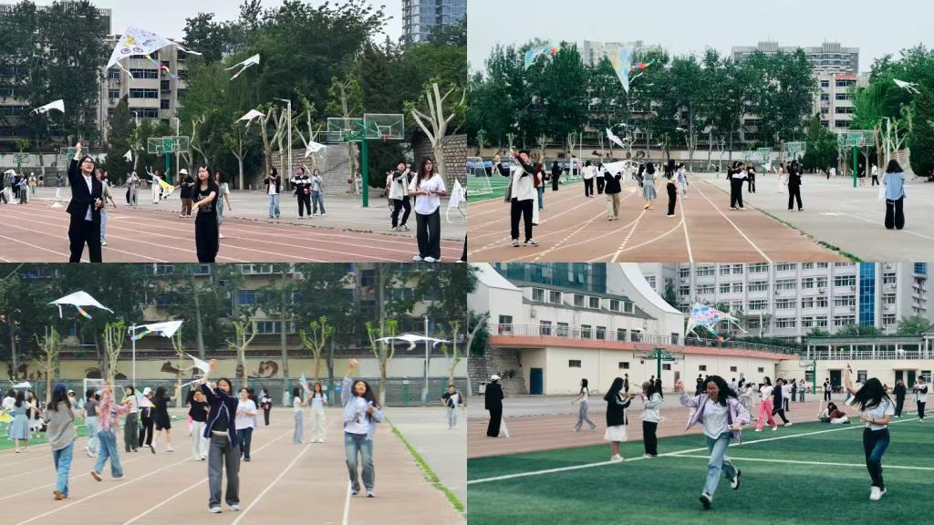 作为本次活动的核心实践环节,风筝放飞活动在东操场有序开展。在严格遵循安全规范与操作流程下,参与者们携带精心绘制的风筝作品在操场上展开放飞实践。暖风拂动间,五彩缤纷的风筝或翩跹如蝶,或翱翔似鹰,与蓝天白云共同绘就一幅青春洋溢的美丽画卷,既承载着个人奋斗理想,也寄寓学校发展愿景,成为传承活动文化、升华精神内核的生动注脚。