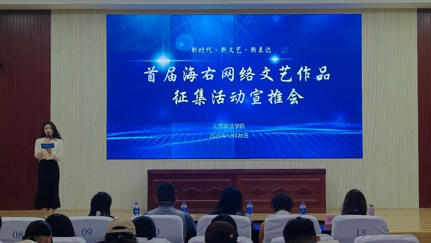 (记者孟德涵)为深入学习贯彻习近平文化思想,落实海右人才培养战略、响应新时代文艺号召,鼓励更多青年创作者用文字、镜头、创意解构时代命题。12月26日,传媒学院举办“新时代·新文艺·新表达”首届海右网络文艺作品征集活动宣推会。中共济南市委宣传部文艺处副处长李菁菁,“海右计划”宣传文化领军人才、山东大学影视文化艺术传播研究中心执行主任、山东大学新闻传播学院副教授于晓风,济南日报文旅事业部主任编辑张晓涵,传媒学院党委副书记刘涛,传媒学院团委副书记刘晓萌出席会议,青年学生代表与会学习。