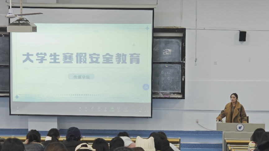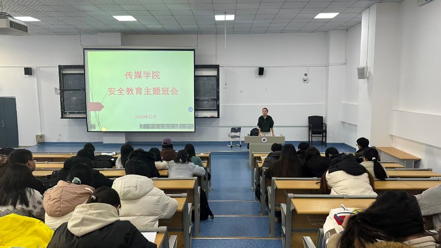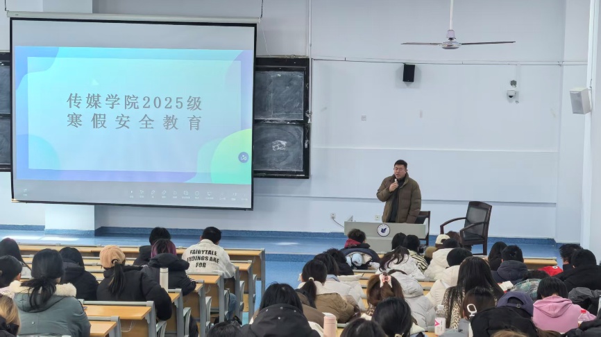 (记者 刘好)为切实强化学生假期安全防范意识,保障学生平安有序度过寒假。近期,传媒学院于致远楼组织召开“寒假安全教育”主题班会。辅导员刘晓萌、李倩、张晰担任主讲人,2023 级、2024 级、2025 级全体学生参加。