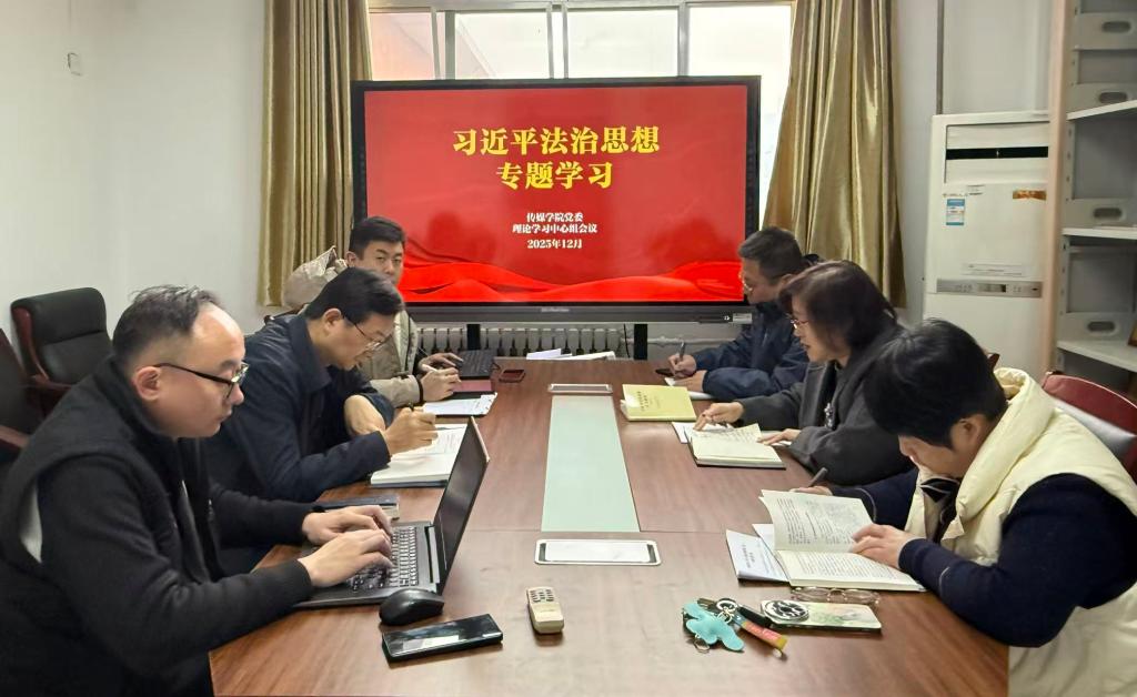 2025年12月25日,传媒学院党委理论学习中心组召开专题学习会议,深入学习领会习近平总书记关于全面依法治国的重要指示精神和《习近平法治思想学习纲要(2025年版)》相关内容,重点围绕“坚持建设德才兼备的高素质法治工作队伍”展开学习研讨,结合学院实际,共谋发展。